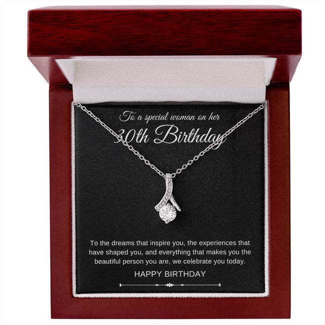 Just imagine her reaction when she opens this stunning gift! This Embraced By Luv necklace features a petite ribbon shaped pendant that is sure to draw a gasp. This is one gift that will be never forgotten.